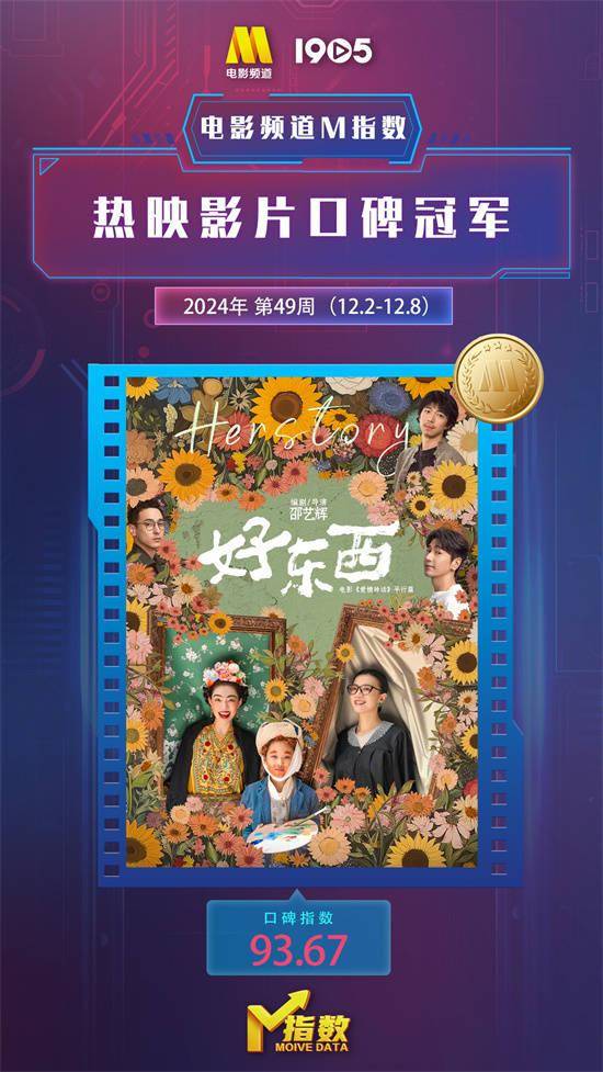 电影频道M指数2024年第49周热映影片口碑榜发布