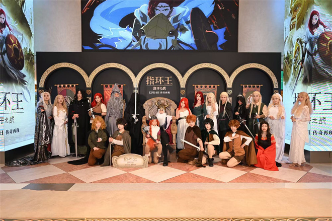 12月10日,由《指环王》三部曲导演彼得·杰克逊监制,《攻壳机动队 STAND ALONE COMPLEX》导演神山健治执导的动画电影《指环王:洛汗之战》举办中国首映活动。为了让观众能够更沉浸的重返中土世界,主办方在活动现场还原了电影中的主题场景以供观众们拍照打卡,另还有许多coser打扮成片中角色的造型来到现场,观影氛围热闹非凡。