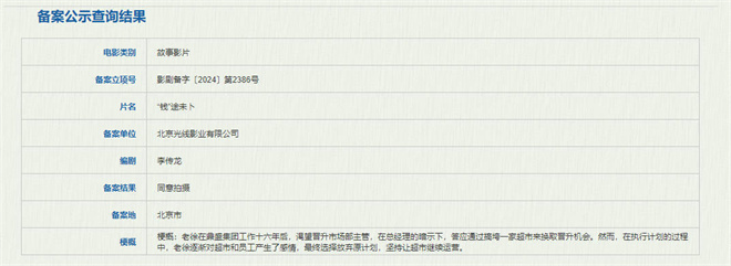 12月13日,国家电影局发布关于2024年11月上全国电影剧本(梗概)备案、立项公示的通知。由李传龙(《第二十条》《心理罪之城市之光》)担任编剧的电影《“钱”途未卜》备案立项。