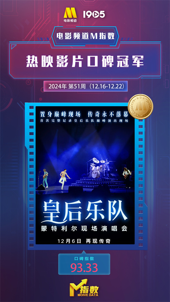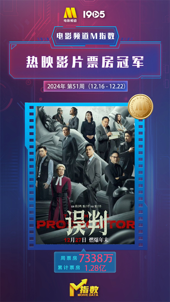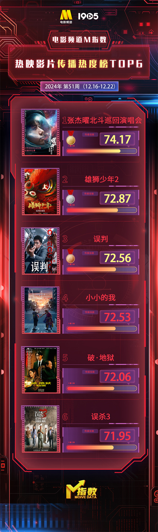“电影频道M指数”2024年第51周结果新鲜发布。