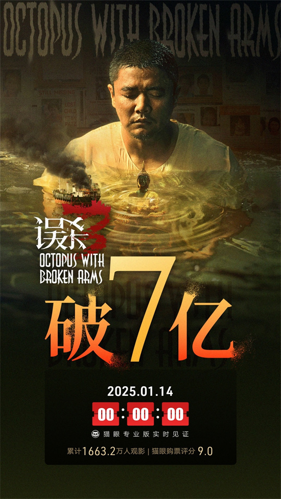由陈思诚监制,甘剑宇执导,肖央、佟丽娅、段奕宏、刘雅瑟主演的部分电影《误杀3》正在热映中。据猫眼专业版,截至2025年1月14日0时,电影累计票房已突破7亿元,暂列2025年票房榜榜首。