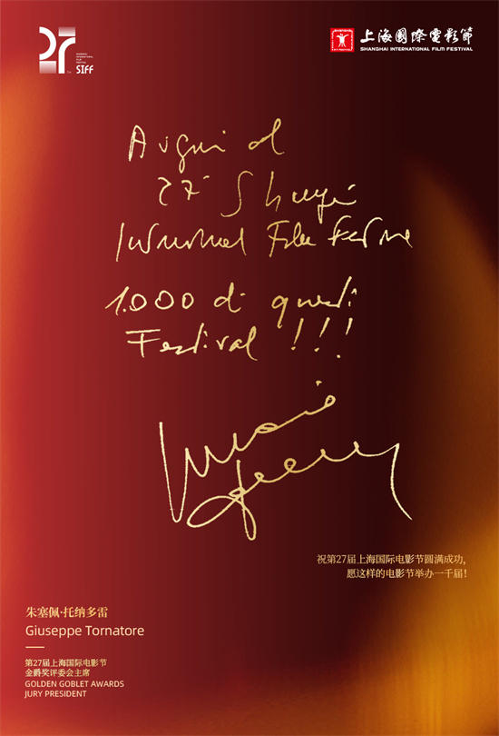 朱塞佩·托纳多雷也为第27届上海国际电影节送来美好祝福:祝本届电影节圆满成功,愿这样的电影节举办一千届!