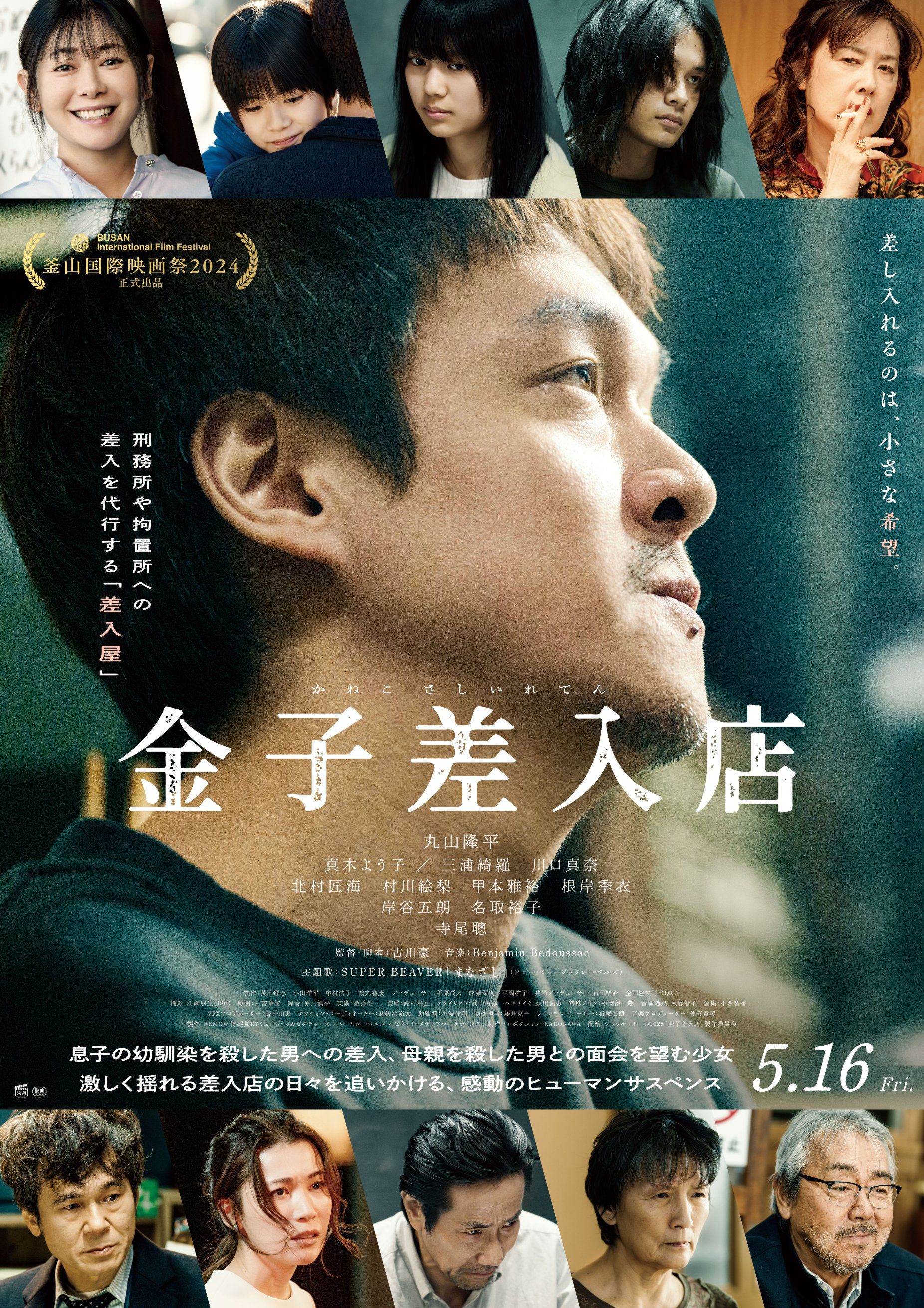 3月20日,由古川豪自编自导,丸山隆平(SUPER EIGHT)主演,真木阳子、三浦绮罗、寺尾聪等共演的电影《金子慰问品店》(金子差入店)发布主题曲预告,由SUPER BEAVER演唱的主题曲《まなざし》解禁!影片是以给监狱和拘留所送物品的代送员金子真司为主角的人性悬疑片。