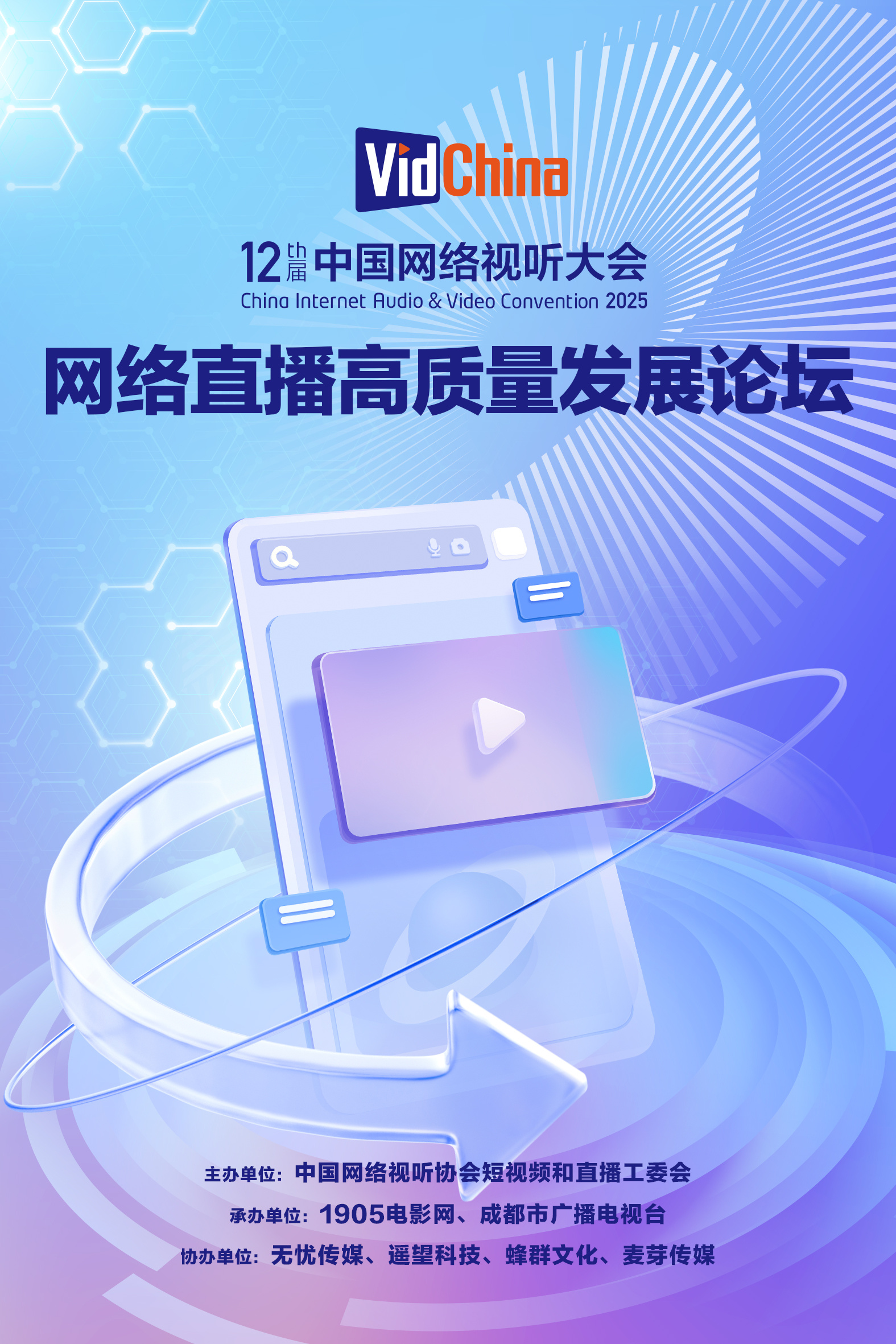 第12届中国网络视听大会“网络直播高质量发展论坛”将于3月27日下午14:00在成都举办!