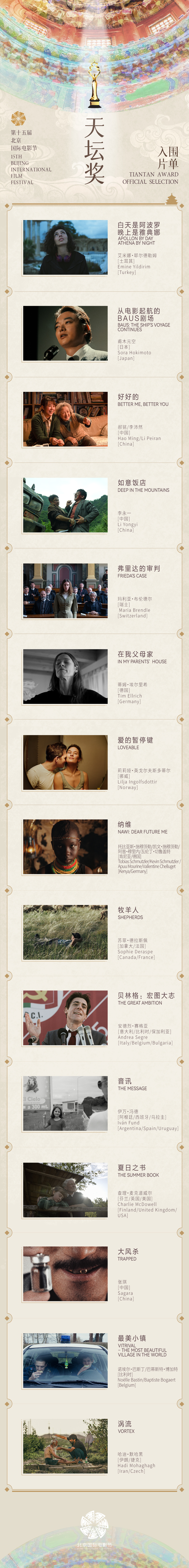 详细信息请点击链接查看:第十五届北京国际电影节“天坛奖”入围影片揭晓
