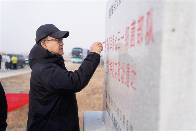 7时45分,全体人员脱帽肃立,垂首默哀三分钟。寂静的遗址上空回荡着历史的悲鸣,参与者神情凝重,以无声的仪式表达对殉难者的深切哀悼。默哀结束后,在场参与人员缓步走向纪念碑,敬献白菊。纯白花束静静倾听着这片历史遗址,是对逝者的无尽追思,也是对和平的永恒祈愿。 8时10分,电影《731》主创为纪念碑描红,以己之笔,传承集体记忆。
