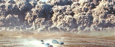 影片片名为《大风杀》,“杀”字贯穿始终,但“大风”却是姗姗来迟,直到最后才露出真容,这也是影片最具争议、褒贬不一的段落。悍匪车队出发不久,迎面而来的巨大沙尘暴,遮天蔽日,仿佛克苏鲁巨兽,要一口将人类吞下。无论是取景、氛围还是特效,都颇有质感,那种“末世美学”画面,让人不禁想起《狂暴之路》。