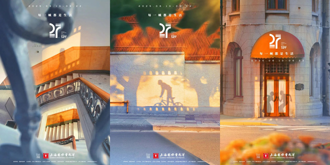 第27届上海国际电影节海报当天也正式揭晓。海报从上海特色的建筑元素和生活场景寻找灵感,采用一副主海报加三幅子海报的形式,构成了“一副三联”,达成了“电影之城,每一帧都是生活”的设计理念和海报主题。