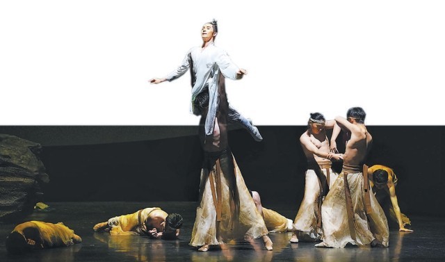 《九歌》剧照,图为张翰饰演的河伯被群舞演员托举而起。