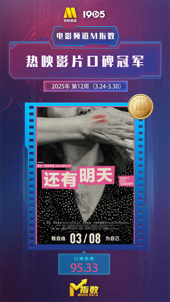3月24日-3月30日,“电影频道M指数”热映影片传播热度榜前6位依次为: