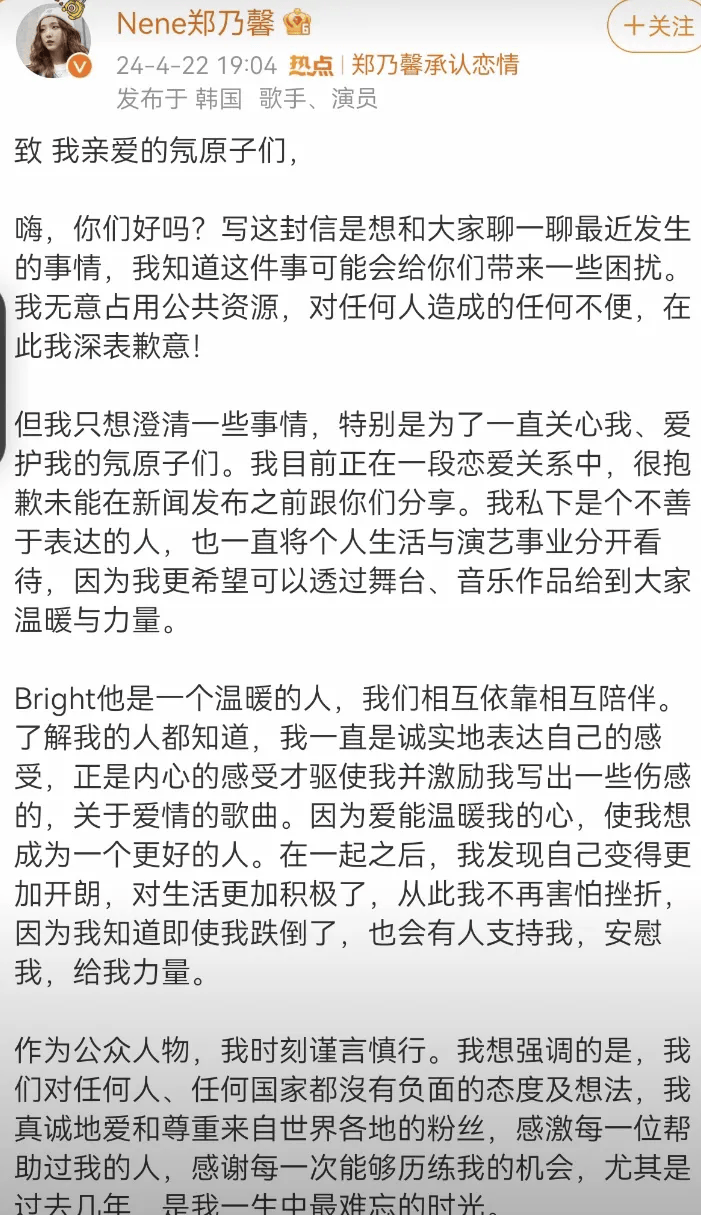 郑乃馨表面上说对不起粉丝,实际上句句离不开她的男孩。爱豆本来就不该谈恋爱,更何况她谈的还是个黑户。