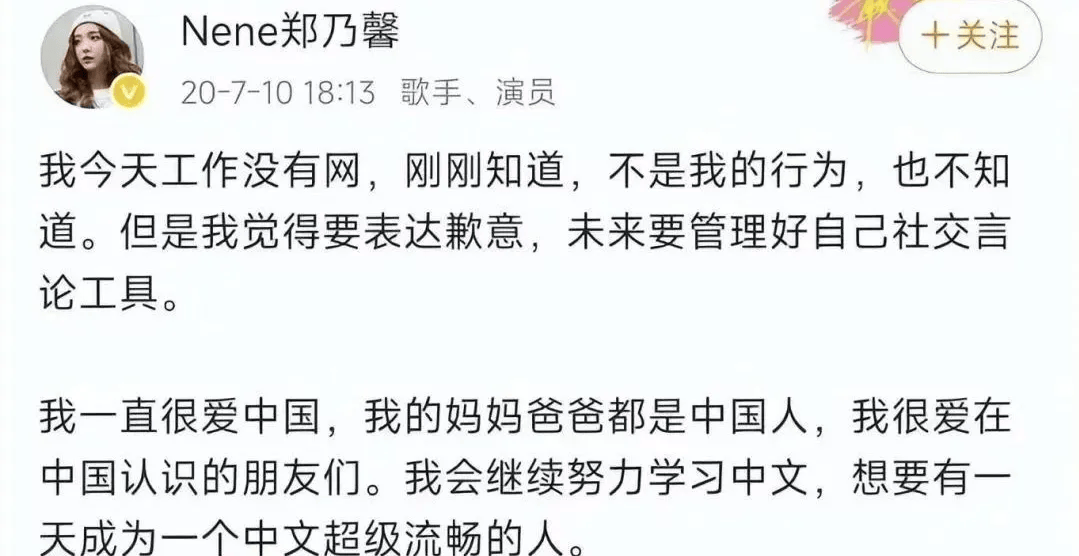 被抓到就说是无心之失,“我今天工作没有网,刚刚知道,不是我的行为,也不知道。但是我觉得要表达歉意,未来要管理好自己的社交言论工具。”