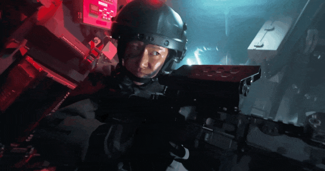 在潜艇上的作战,空间狭小是个问题,但林超贤导演的调度还是很厉害的,已经做到十分完美。