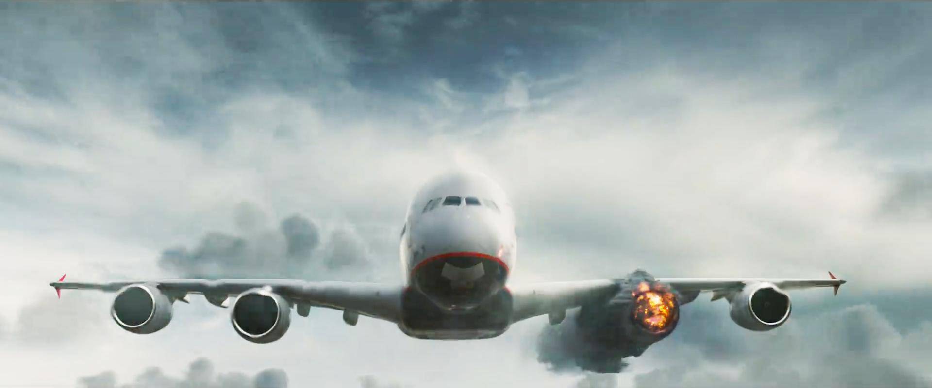 特别是片尾客机迫降时,在起落架打不开的情况下,用两辆大卡车托起客机起落架的场景,虽是CG打造,却也惊险万分。