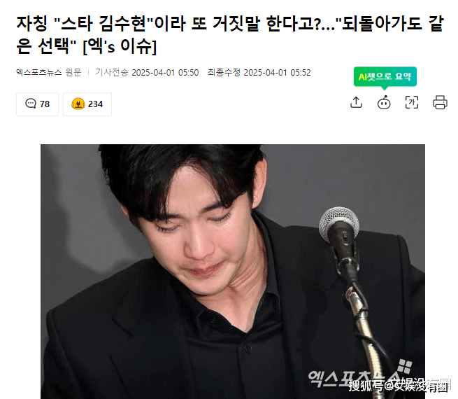 昨日(31日)下午,金秀贤就与未成年时期的金赛纶交往、催债金赛纶等已经发酵近一个月的争议,在首尔麻浦区某酒店召开了记者发布会。虽然在本次发布会上,金秀贤没有给记者们提问的机会,但是以金秀贤为代表的金秀贤一派依旧“哭诉”了40多分钟。