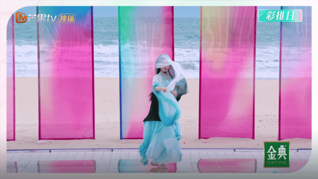 初舞台设置在海南的沙滩上,远远看过去根本看不到姐姐在哪里。