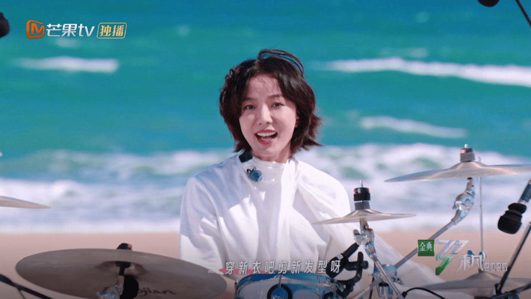 她的初舞台是弹唱和架子鼓。