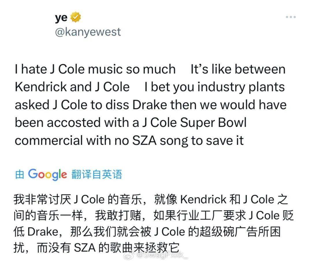 Ye真就一波未平一波又起啊,不知道一向佛系的J.Cole会不会回应Ye的点名。