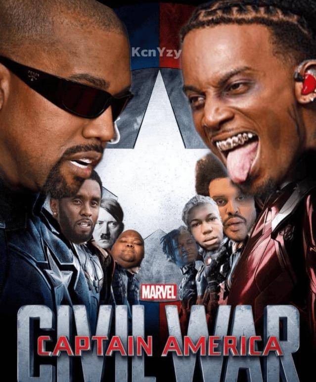 想起Ye之前还晒出过新的“说唱版美国队长内战”图。