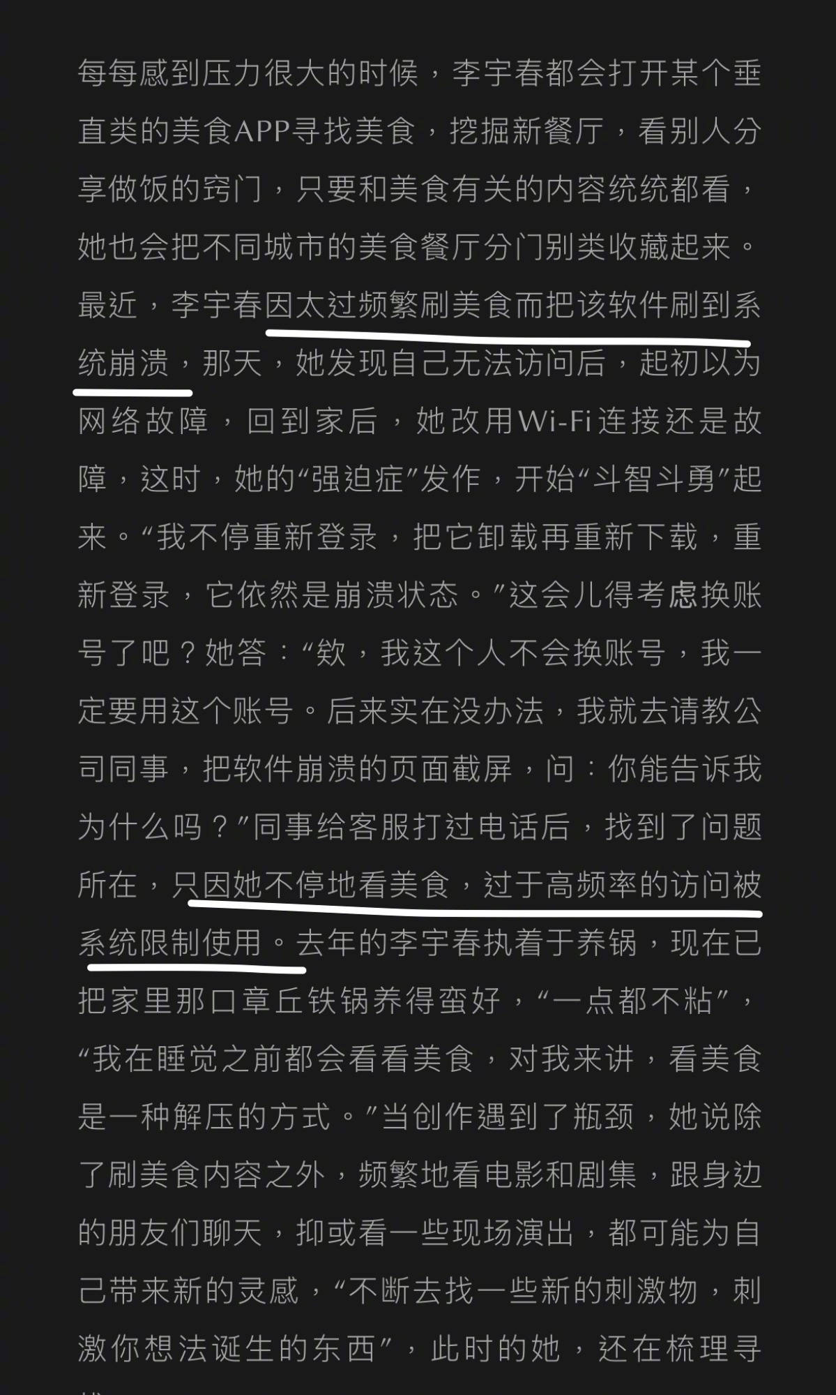 谈到解压的方式,她说自己会不停地刷美食内容,最近还因为访问频率过高导致软件系统崩溃。