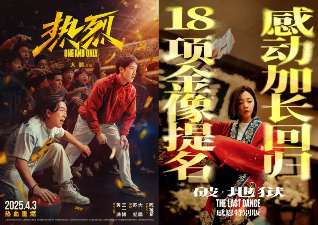其中包括两部老作品复映:2023年暑期档上映,大鹏执导,黄渤、王一博主演的街舞题材运动励志片《热烈》原版将重映;去年大热港片《破·地狱》也将以140分钟“感恩特别版”(比原版长14分钟)的形式,同步港澳与内地观众见面。
