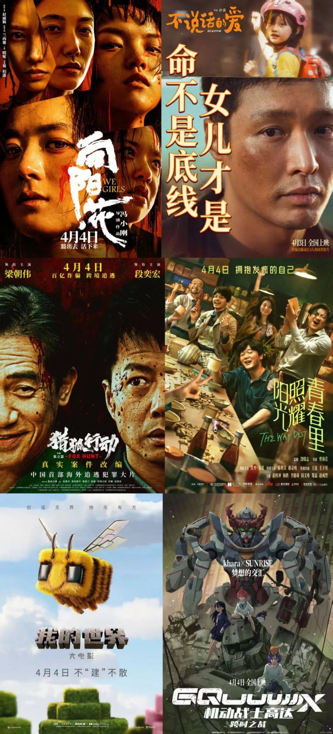 冯小刚执导,赵丽颖主演的女囚题材作品《向阳·花》,张艺兴主演的听障题材亲情电影《不说话的爱》,梁朝伟、段奕宏主演的海外背景警匪片《猎狐·行动》,肖央主演的黑色幽默电影《阳光照耀青春里》,好莱坞游改大片《我的世界大电影》,以及庵野秀明操刀的新“高达”IP电影《机动战士高达:跨时之战》。