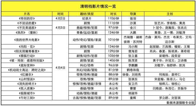而清明档作为第二季度的开始,意味着市场将迎来全新可能。第二季度涵盖清明档、五一档和端午档三个中小档期,这些档期已经为一批优秀的中小成本影片提供了很好的沃土,更是能为后续的暑期档提供更强的动力。