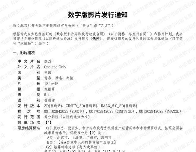 值得注意的是,根据发行通知显示,《热烈》仅在部分影院进行重映,《破·地狱:感恩特别版》仅在英皇影院限定上映。除此之外,清明前一周上映的和《周末狂飙》或也能凭借上映后的观众对其的认可,在次周继续发酵。