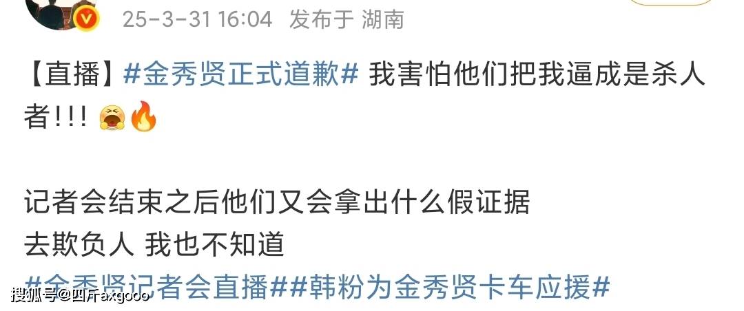 金秀贤记者会上说自己会害怕,但话说回来,既然金秀贤说金赛纶遗属方曝出来的都是假料,又有什么可害怕。假的越多,不就对他越有利吗?