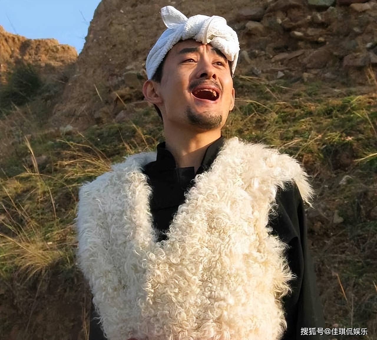 身穿羊皮袄、头扎白毛巾,皮肤黝黑,自带土味。