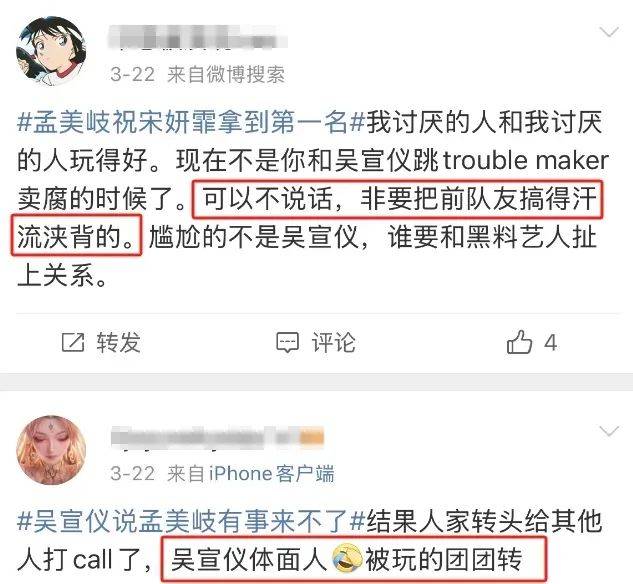 这事一出,吴宣仪和孟美岐两家粉丝就开始互相攻击了起来,可以说是谁也不让谁。
