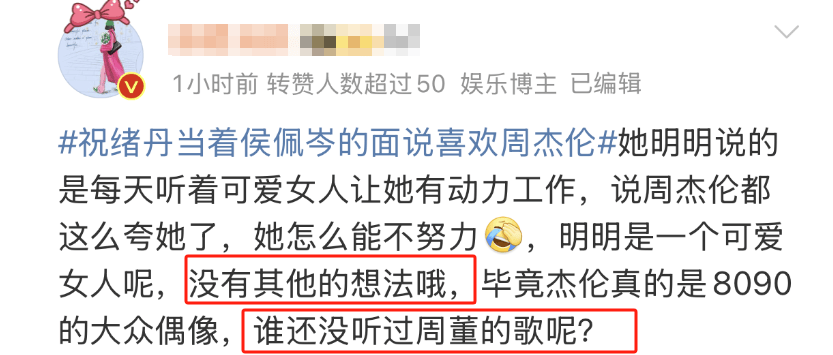 这次脱口而出,也是想要表达对杰伦的喜爱。