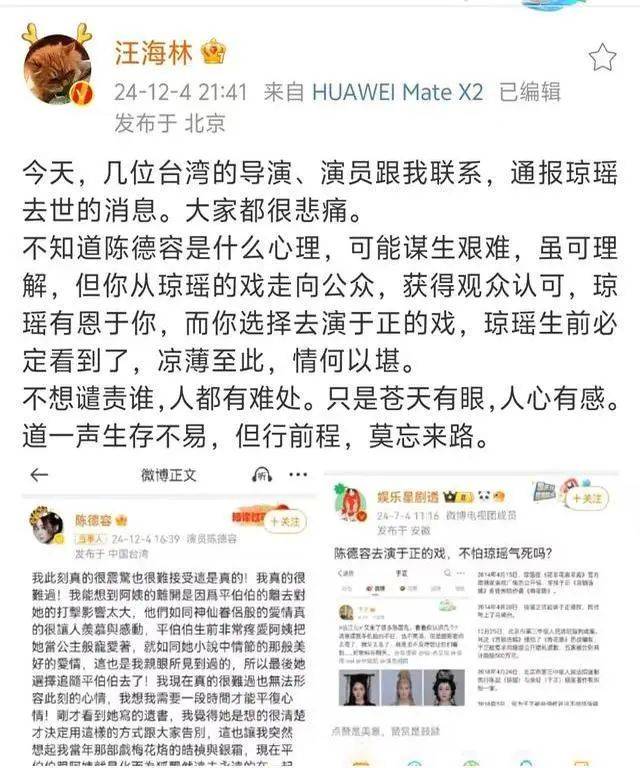 2014年,琼瑶起诉于正抄袭《梅花烙》,陈德容当时力挺琼瑶。