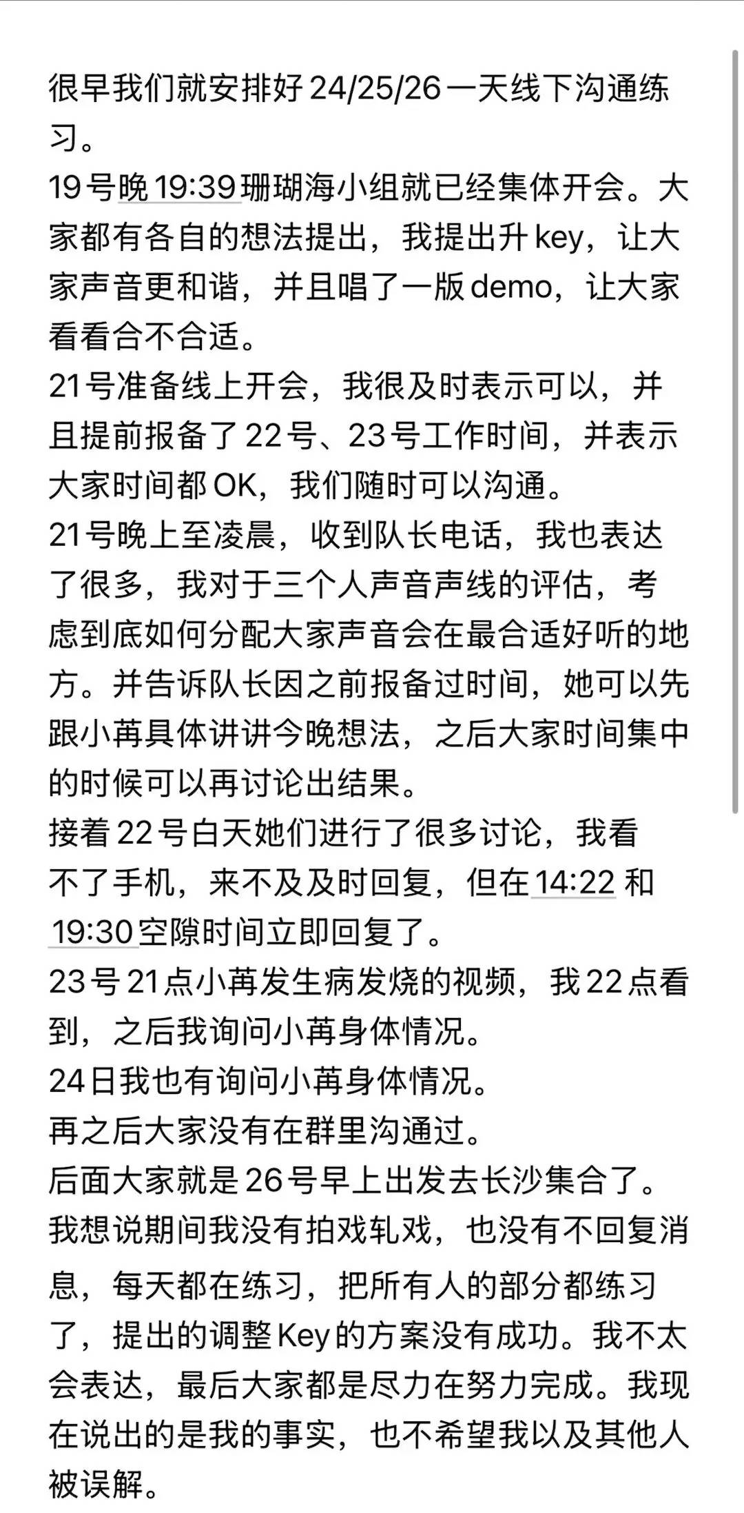 此前,《浪姐》在节目中放出何泓姗、彭小苒、房淇三人的聊天记录,内容是何泓姗、彭小苒在拍戏,没空和房淇一起练习,引发热议!