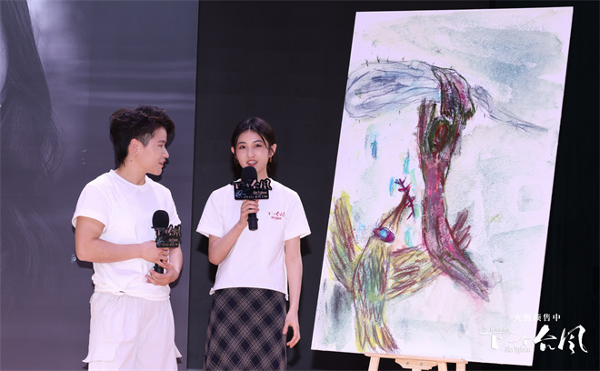 众主创也在活动现场揭秘,片中林沫沫所绘的大部分画作都由张子枫本人所画,子枫直言:“沫沫的画就是她内心世界的写照,画画帮助我走进角色,走进沫沫的故事”。子枫也现场带来了其中的一幅画作,和饰演阿汐的张伟丽一起,讲解了这幅画中所暗含的角色间的联结。