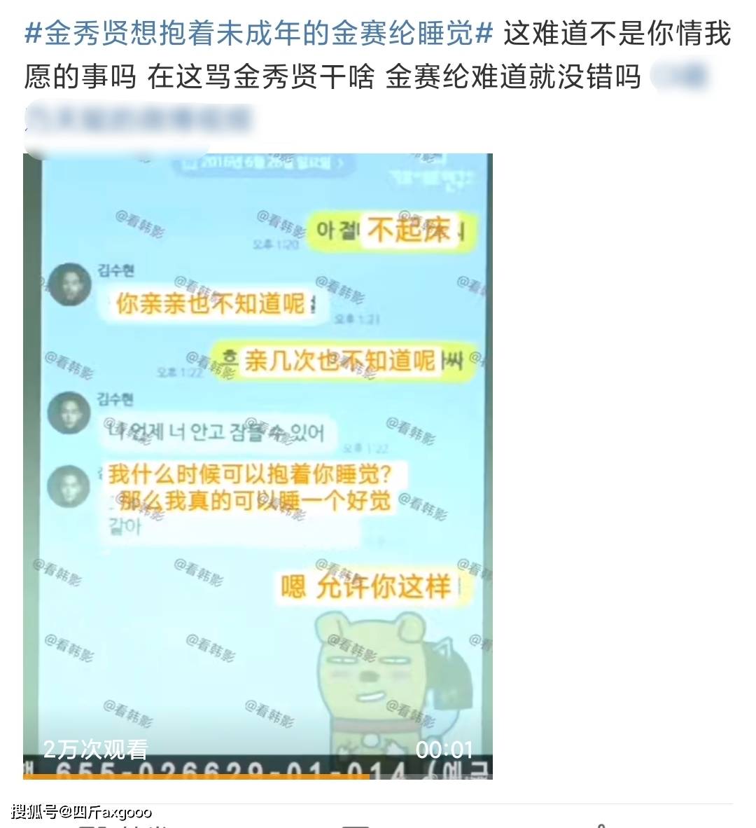 自金赛纶遗属方面放出金秀贤和金赛纶在2016年,也就是金赛纶未成年时期二人的尺度聊天记录,以及金秀贤给金赛纶发的不恰当视频后。