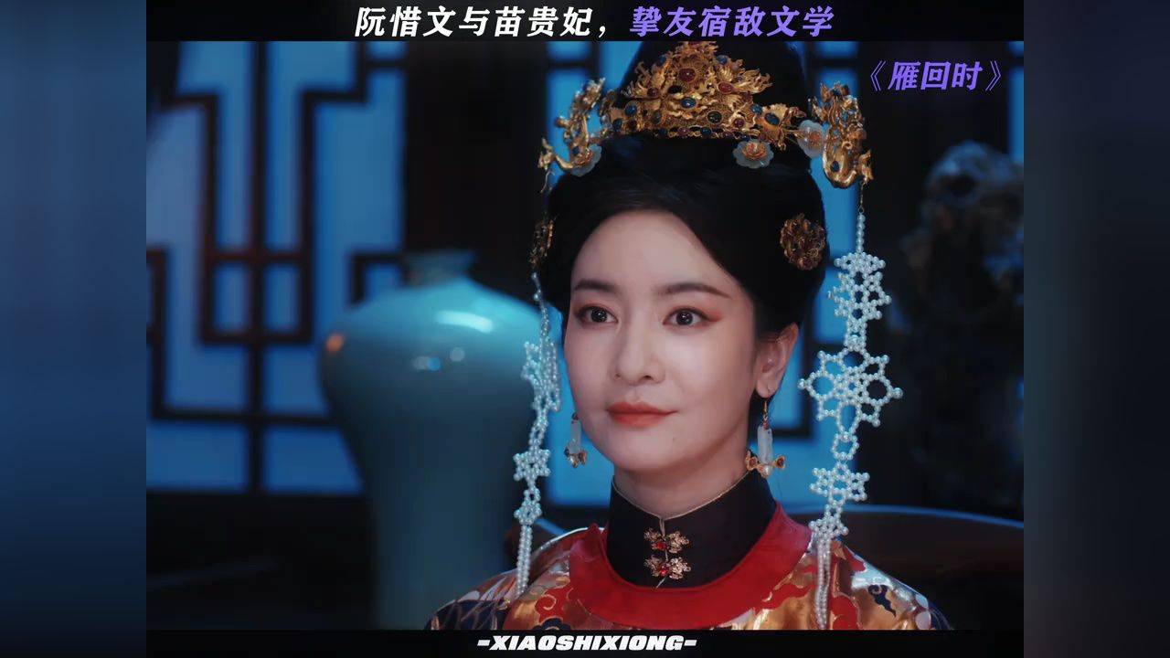 《雁回时》中,李晟饰演的苗贵妃首度亮相,她身穿华丽的服饰,气场十足,给予观众强烈的视觉冲击力。虽然该角色的背景故事尚未完全展开,但根据原著,苗贵妃可谓个性十足,与阮惜文之间的复杂情感纠葛让人对后续剧情充满期待。