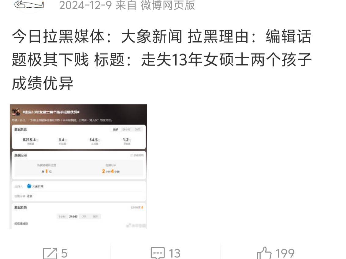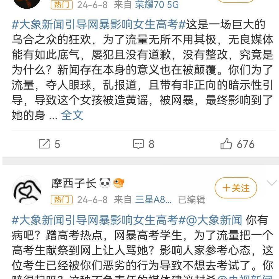 随着网友越扒越深,发现这还不是大象新闻第一次误导大众了,官方号媒体本应保持客观,但它却喜欢营造各种有争议性的尖锐话题,还曾带动网友对一个女生进行网暴,还有一次暗戳戳的支持一个极端女权博主,被网友疯狂嘲讽。