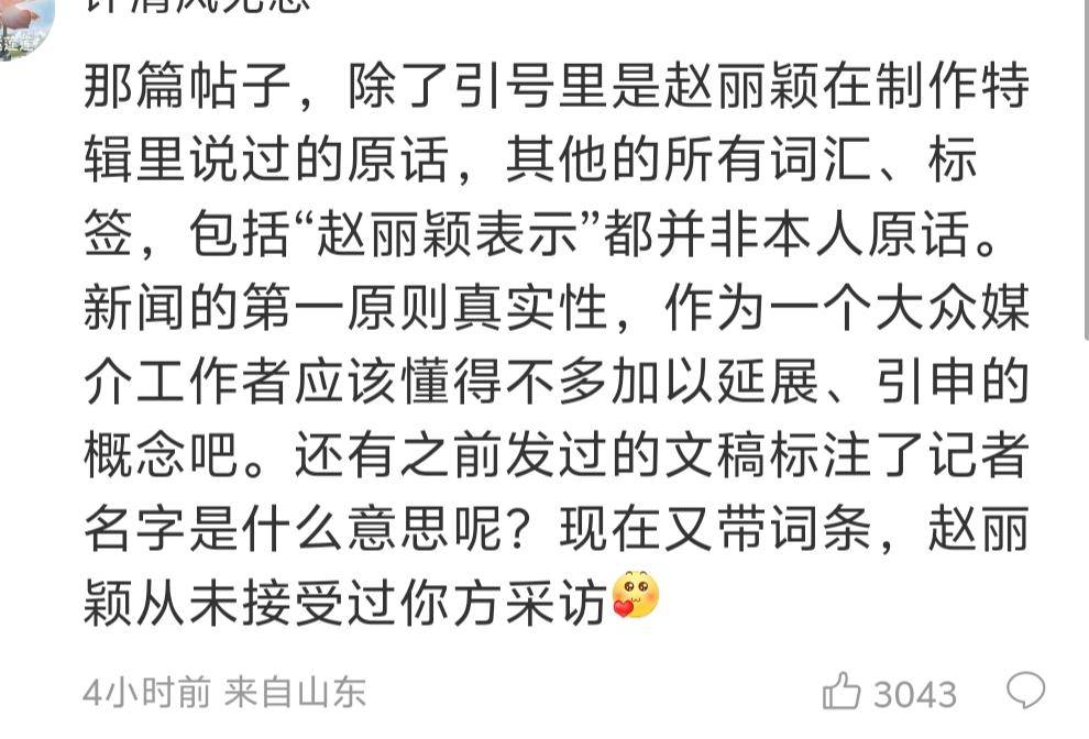 很多网友仔细分析了这则新闻后才明白,报道全文只引用了赵丽颖的一句话,其他内容来自于创作人的说法以及网友的看法。