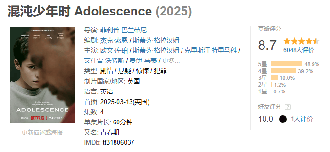 这是一部令所有家长恐惧的电视剧,更是一面照出社会阴暗角落的镜子,提醒我们在那些看似微不足道的日常中,学会倾听少年的沉默,看见他们内心深处的伤痕。