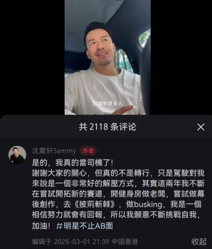 41岁TVB演员沈震轩转行开网约车被多名网友偶遇。