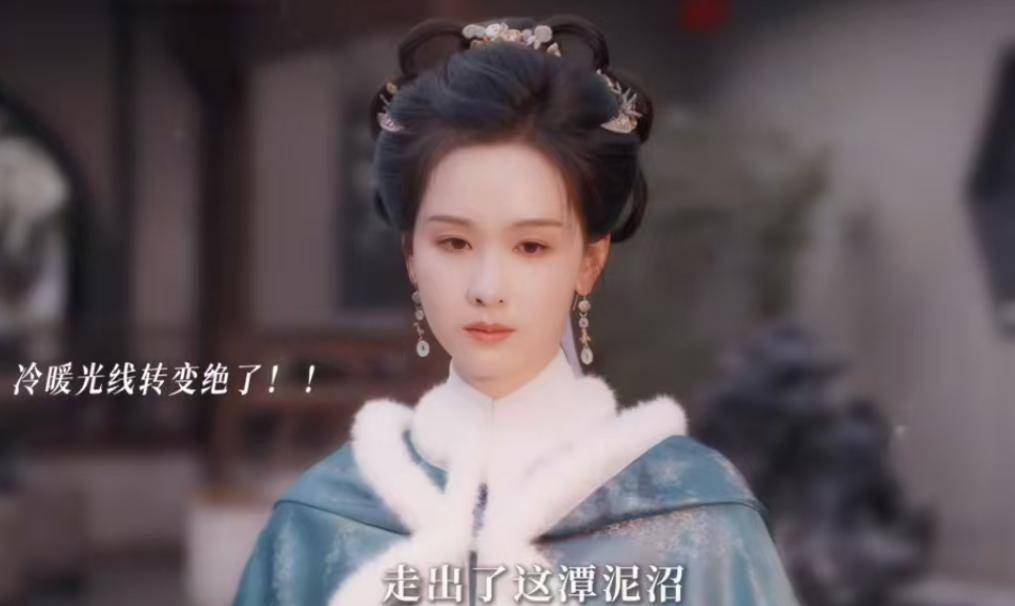 明暗光线切换间,童年时的庄寒雁出现,她穿着比较破旧的衣服,目光悲苦,脸颊瘦削,这一幕镜头切换得很丝滑,让人感受到强烈的对比感,成为了封神级别镜头,在某社交平台点赞破10万。