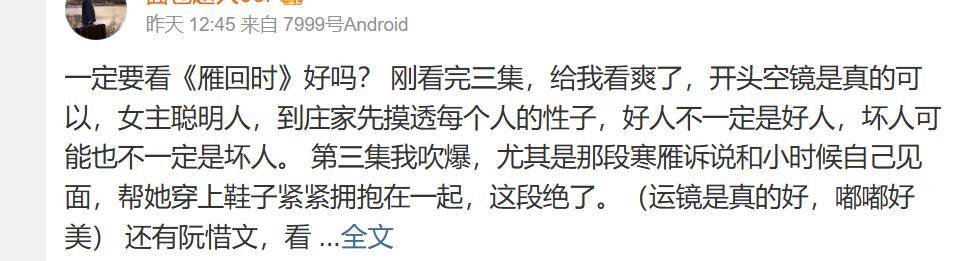 因为相比起颜值来讲,还是剧集的质量更重要,这部《雁回时》,妥妥的就是今年古装剧的王炸。