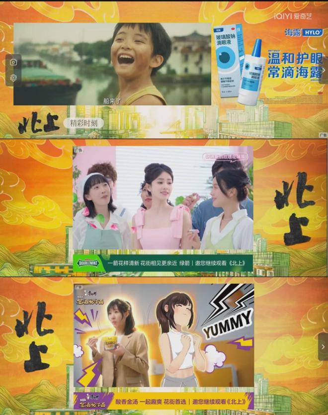 会挑IP:改编自文学小说,保留“运河精神”内核,把大时代变化浓缩到普通家庭故事里,比如胡军演的船运老板从风光到落魄再到转型,让观众看到父辈的影子。 会拍现实题材:之前的《人世间》《狂飙》也是走“小人物见证大时代”路线,这次《北上》继续用90后奋斗线勾连不同年龄层观众。 商业眼光准:品牌看中这类剧的国民度(全家一起看)和情感共鸣,贴片广告变成“剧情伴侣”,观众不反感反而觉得亲切。总结