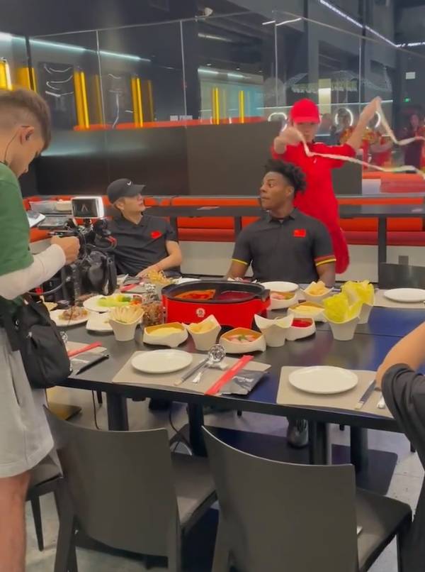 搜狐娱乐讯 3月24日,知名网红speed中国行第一天,王嘉尔和speed现身上海某火锅店吃饭,当天speed身穿刻有“速度”字样的T恤衫,一个劲儿的看拉面师傅抻面,期间还与店员追逐一番,喜剧效果拉满。