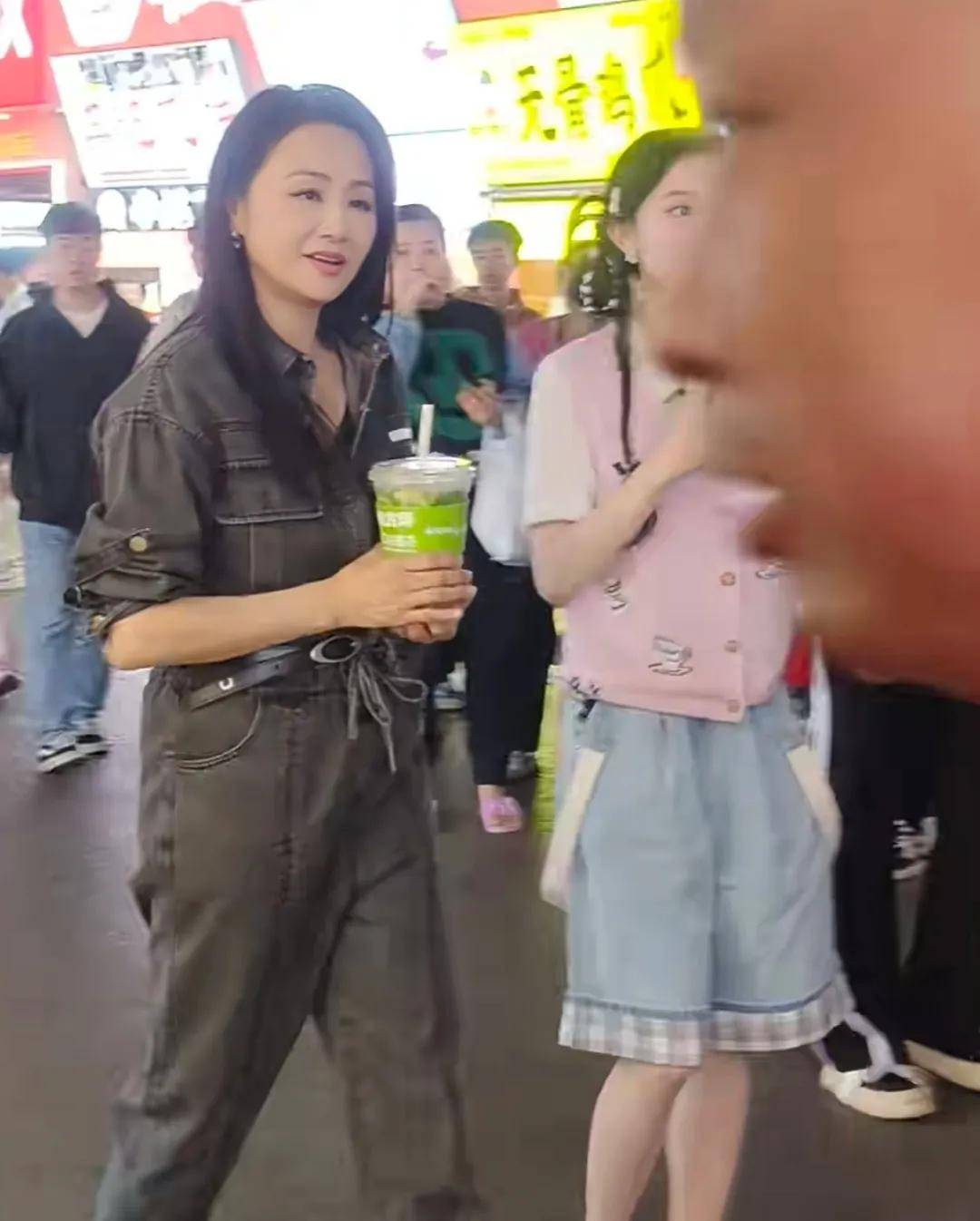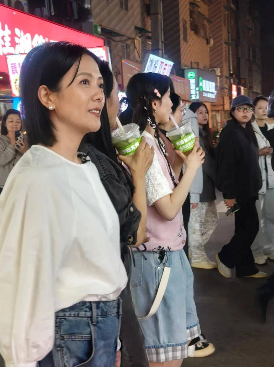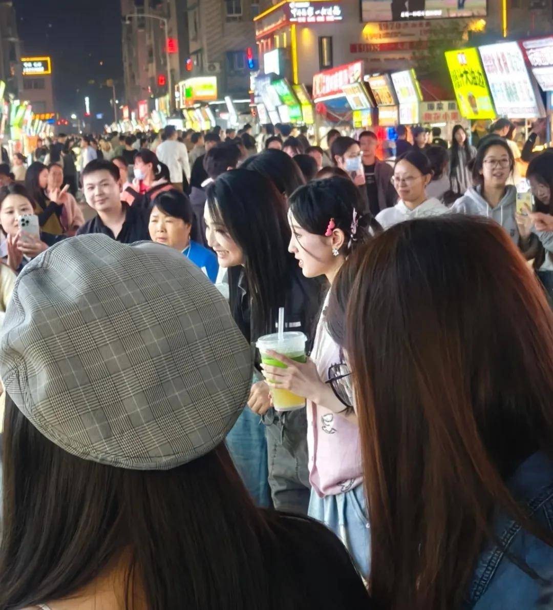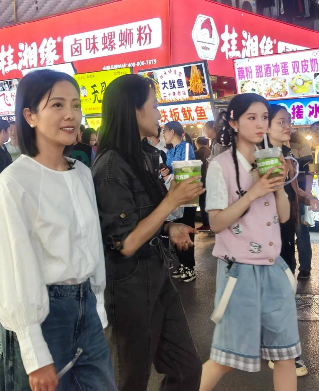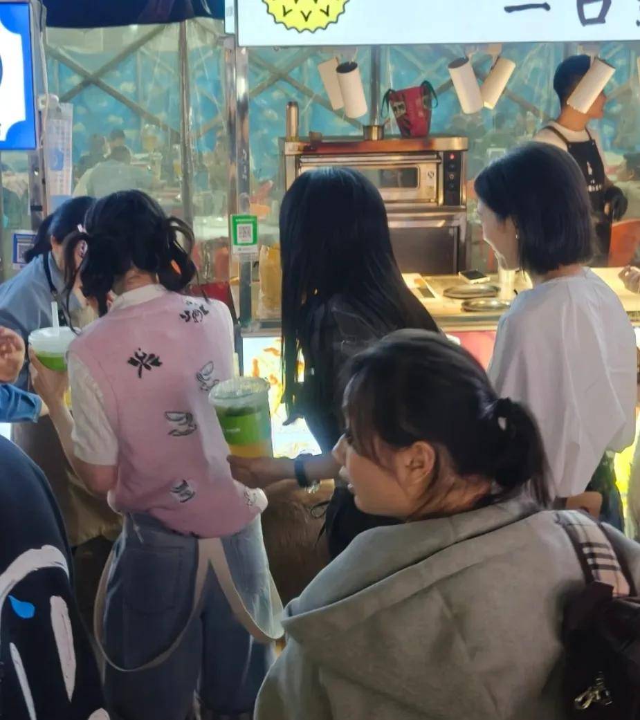 曹颖和张雅琪各端了一杯奶茶,一行人边走边逛,引来了不少路人围观。