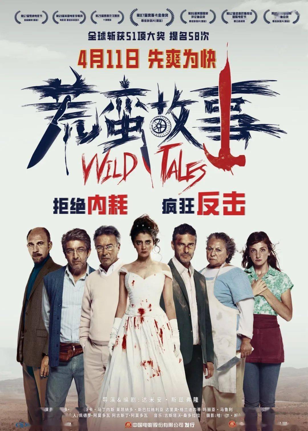 阿根廷电影《荒蛮故事》中国内地定档4月11日。影片2014年在阿根廷上映,入围当年戛纳电影节主竞赛单元。这部黑色幽默喜剧电影由六个独立的短篇故事组成,以极端荒诞的方式展现了人在面对压力、背叛和不公时的反应,探讨了愤怒、复仇和社会不公等主题。