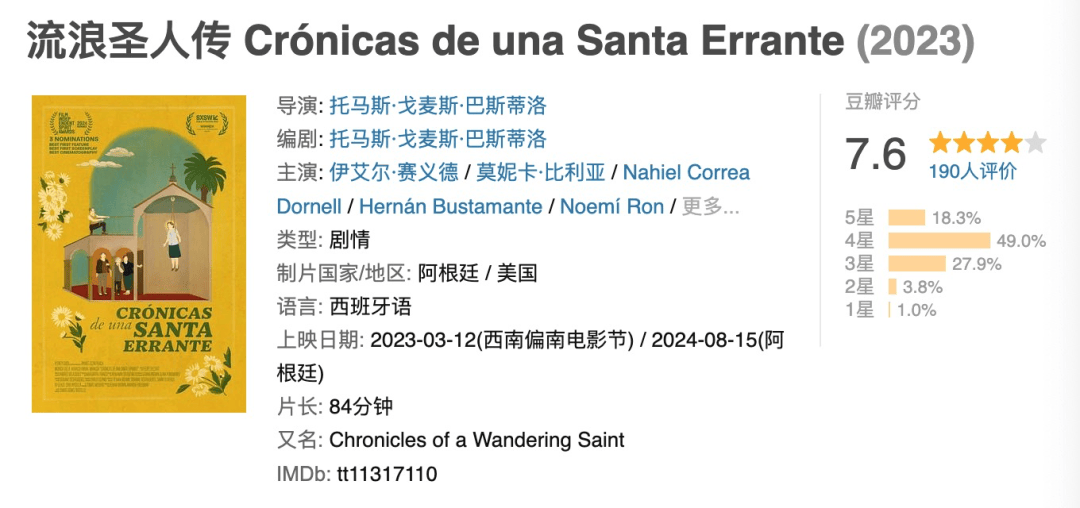 去年评价还可以的一部小艺术片,也拿到了一些奖项,宗教讽刺电影的同时,还融入了一些生活的日常,从评价看,还挺有趣的。
