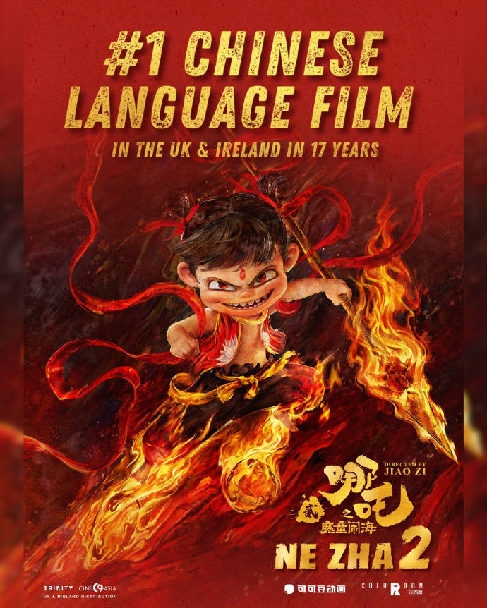 搜狐娱乐讯 3月21日,据媒体报道,《哪吒之魔童闹海》仅凭在英国和爱尔兰点映票房就创造佳绩,成为近17年来华语片在英国和爱尔兰票房冠军。据悉,本片将于今日在英国和爱尔兰正式上映,并将冲击英国和爱尔兰影史华语片总票房榜Top 5。