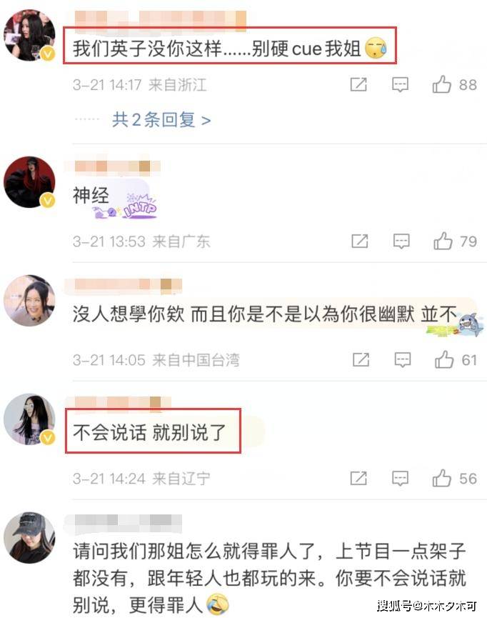 姐姐们不熟,硬聊也在所难免,可曹颖之后在采访中又cue到了不在场的那英,说自己得罪人的性格比那英好一点,这样的说辞引发了不少那英粉丝的吐槽,觉得她故意蹭那英,都51岁的人了,说话怎么如此不稳重,那英真是无妄之灾。